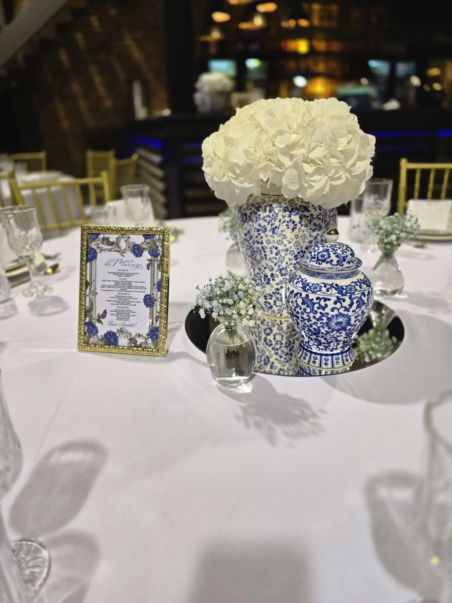 - Décoration florale harmonieuse : milieux de table, arche, table d’honneur